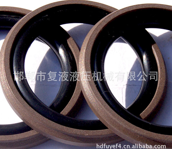 由一個階梯圈與矩形橡膠密封圈組成,矩形橡膠圈提供足夠的密封力,并對四氟階梯圈的磨耗起補償作用,矩形橡膠圈接觸壓力高,抗扭轉、負荷能力較高,與導向環配套使用。適用于大型液壓缸活密封,單向密封。